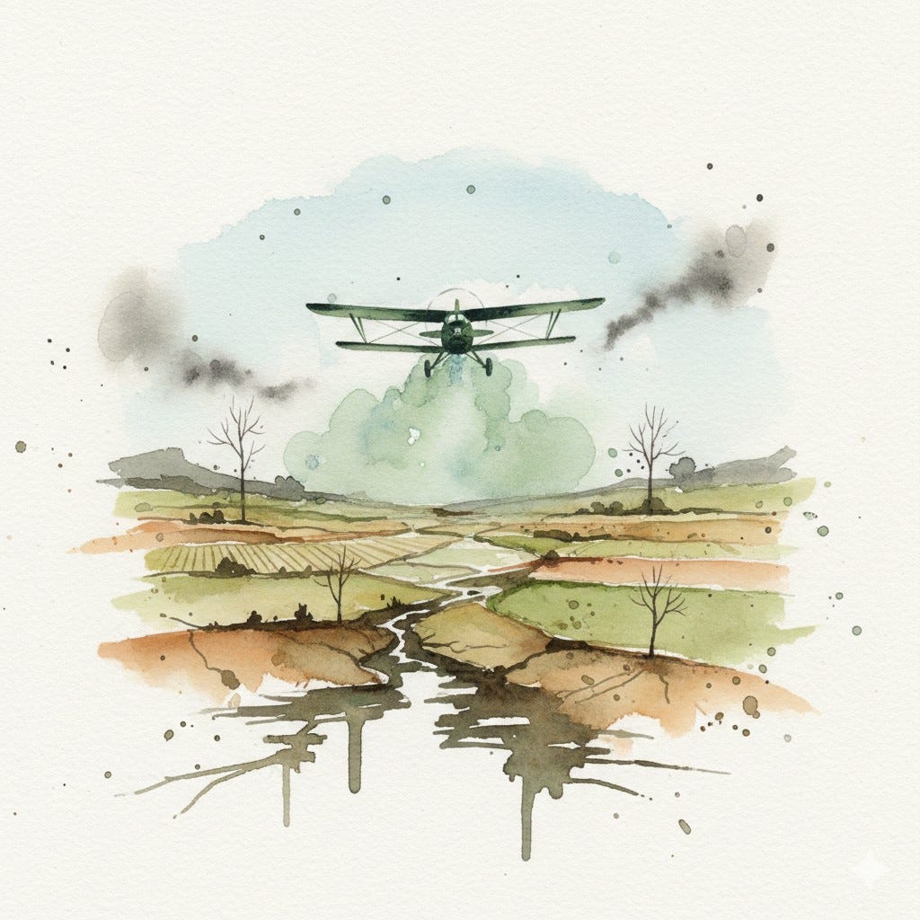 But on a recent Sunday in February 2026, that peace was shattered by a low hum in the sky. As the planes passed, a heavy mist settled over his groves. It did not smell like life. It smelled like the end. Within hours, the silver-green leaves began to curl and turn black. This is the nightmare currently unfolding in the south. It is a story of where the very soil people need to survive is being used as a weapon of war.